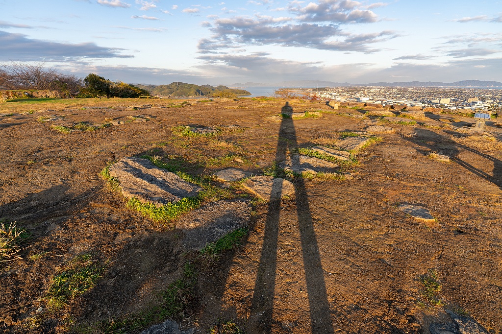 正面登城路と比べ迂回路はかなり遠回りなイメージだが、実際に湊山公園駐車場に車を停めて城山周回道路経由で中海側登城路ルートだと上りが10分、下りが7分といったところで2割増し程度。まあまあ許容範囲内ではないか。周回道路は街灯もついてるし舗装道路で歩きやすいので、意外と朝晩使いやすいのかもしれない。