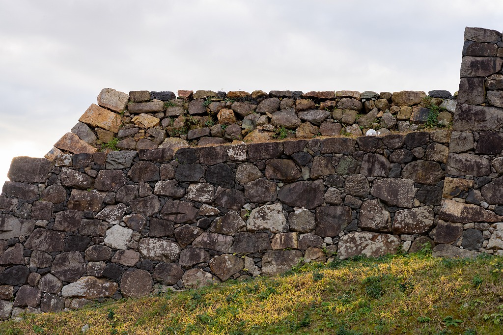 そういえば、天守の西側の通路からも鯛石の石垣が見えるとの情報があったので探してみると、あ、本当だ!言われてみると鯛の形🐟に見える石が2つとおまけにカエルの顔🐸に見える石(蛙石)が。と、ちょっと離れて遠見櫓から眺めると本家「鯛石」もバッチリ見える…ん?もしかすると「見える」情報はこっちのことだったのだろうか。