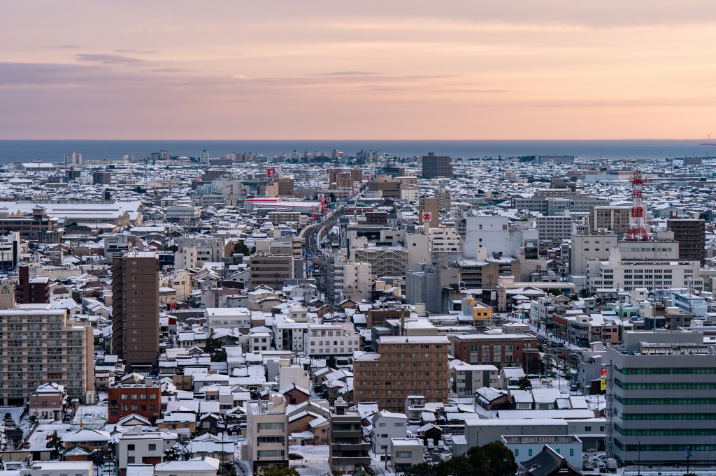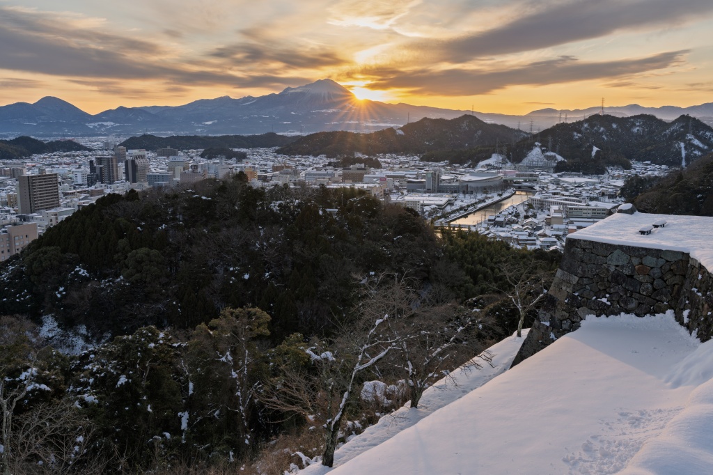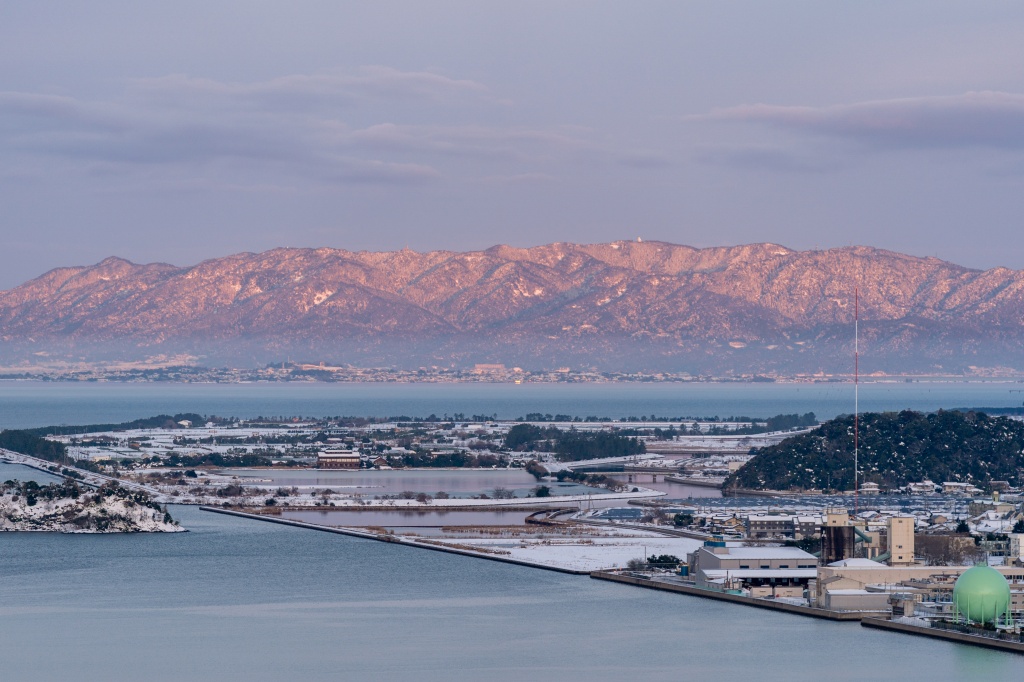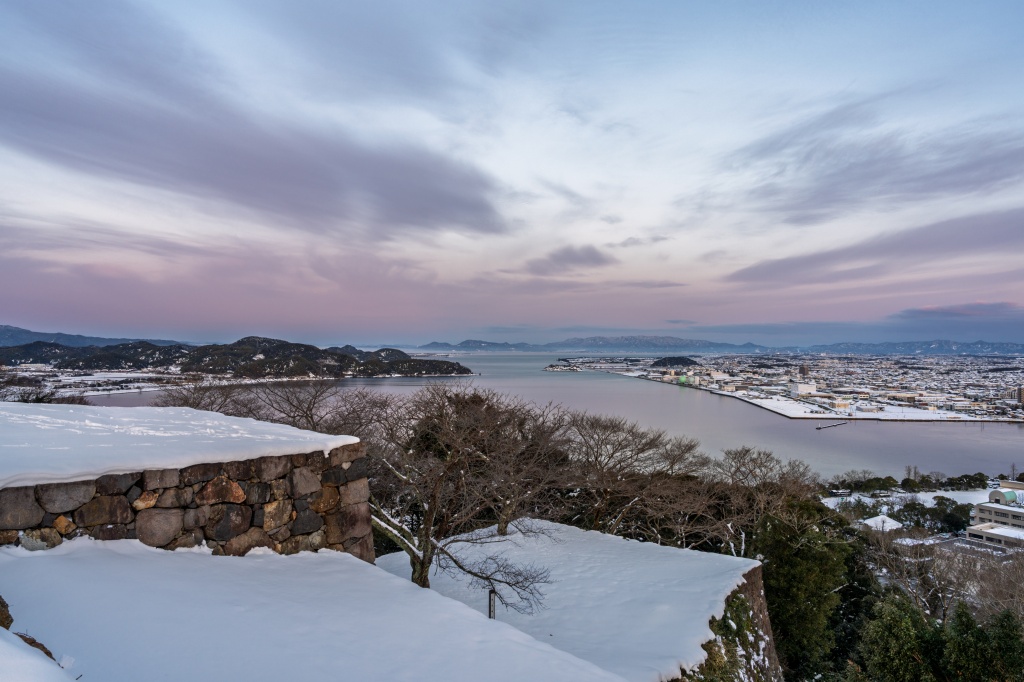 天守でも、大山~市街地~中海~鯛石、ダイヤモンド大山シミュレーション、氷温中海、雪萌え市街地、疑似立山連峰等々見どころメニューがフルコース仕様で展開。まさに、夕焼けリベンジの朝焼けゲットといった感じである。